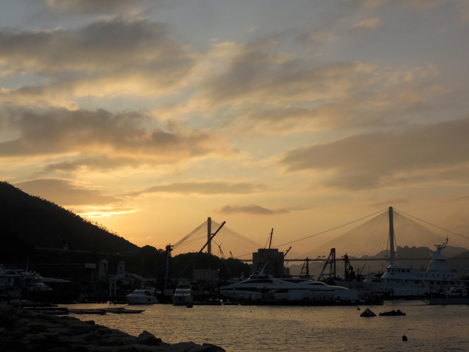 當日天陰看不到太陽的,到達時卻有意外驚喜,紅紅的太陽掛在橋的綱纜上。